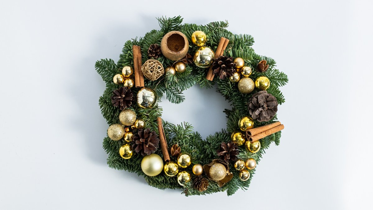 Χειροποίητο στεφάνι από αληθινά κλαδιά έλατου και χριστουγεννιάτικα στολίδια. Επίλεξε το μέγεθος που επιθυμείς