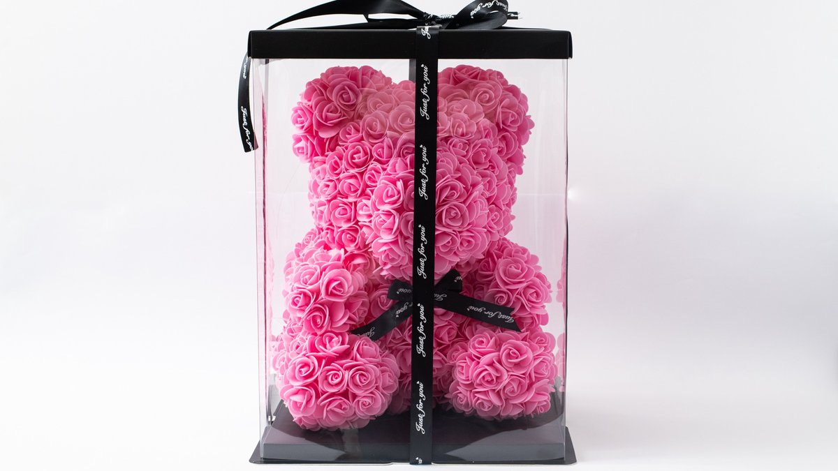 Aρκουδάκι από latex ύφασμα τριανταφυλλάκια που διατηρούνται για πάντα, σε κούτι. Επίλεξε το μέγεθος που επιθυμείς