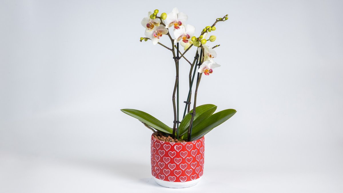 Ορχιδέα Μεσαίο Μέγεθος σε Πήλινο Κασπώ με Καρδιές