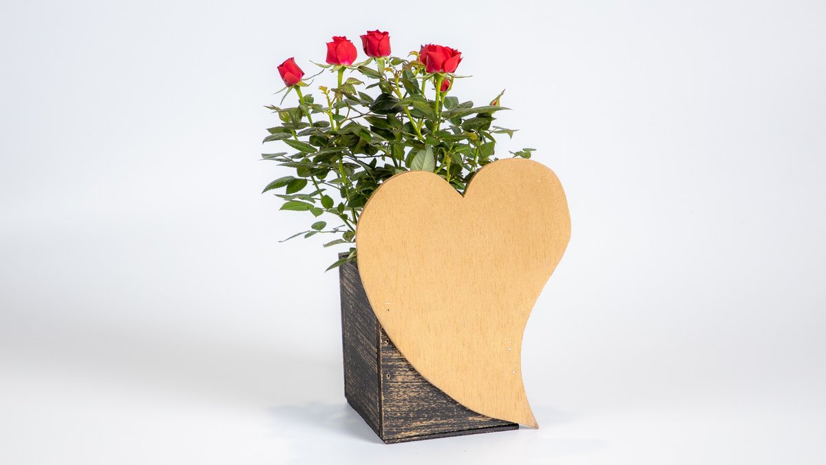 Τριανταφυλλίτσα σε Ξύλινο Κασπώ με Καρδιά